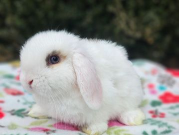 Daisy is a beautiful girl! She has white fur with orange and black Charlie markings and blue eyes. She forever has makeup on, like a true beauty queen. She is very cuddly and sweet and anyone would be fortunate to have her as their bunny best friend. She is ready for a new home on March 20. Please contact us for more photos or to reserve her today!